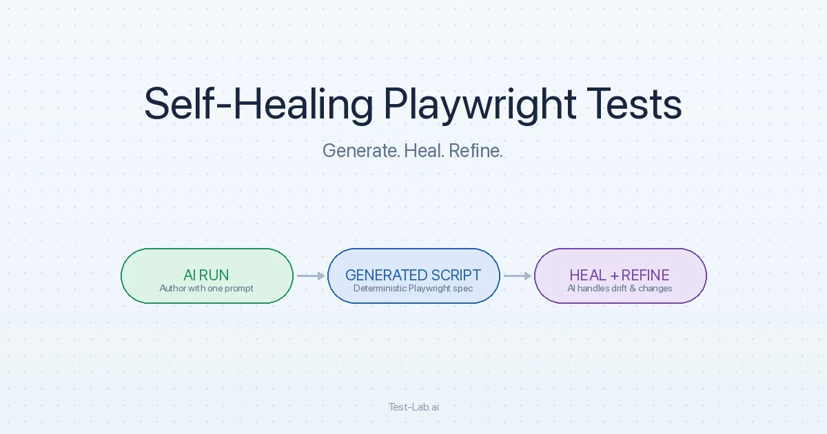 Authoring is fast because the AI does the discovery. Running is cheap because deterministic Playwright is cheap. Maintenance is bounded because healing handles UI drift and refinement handles intentional change.